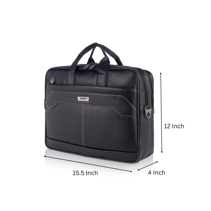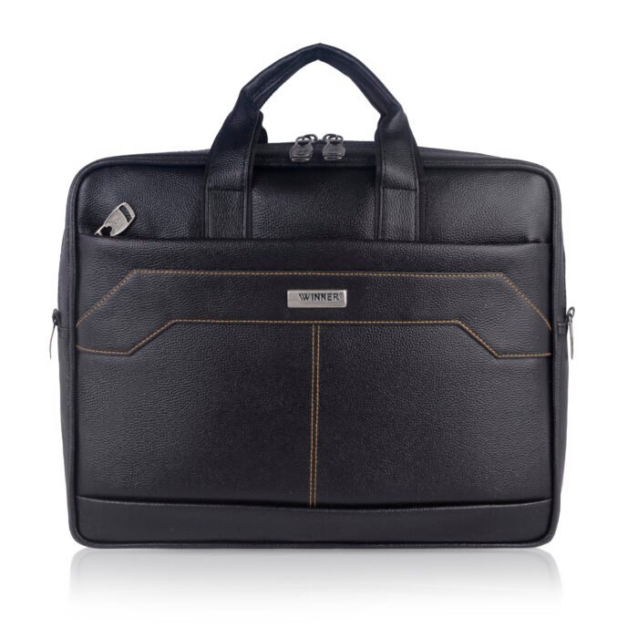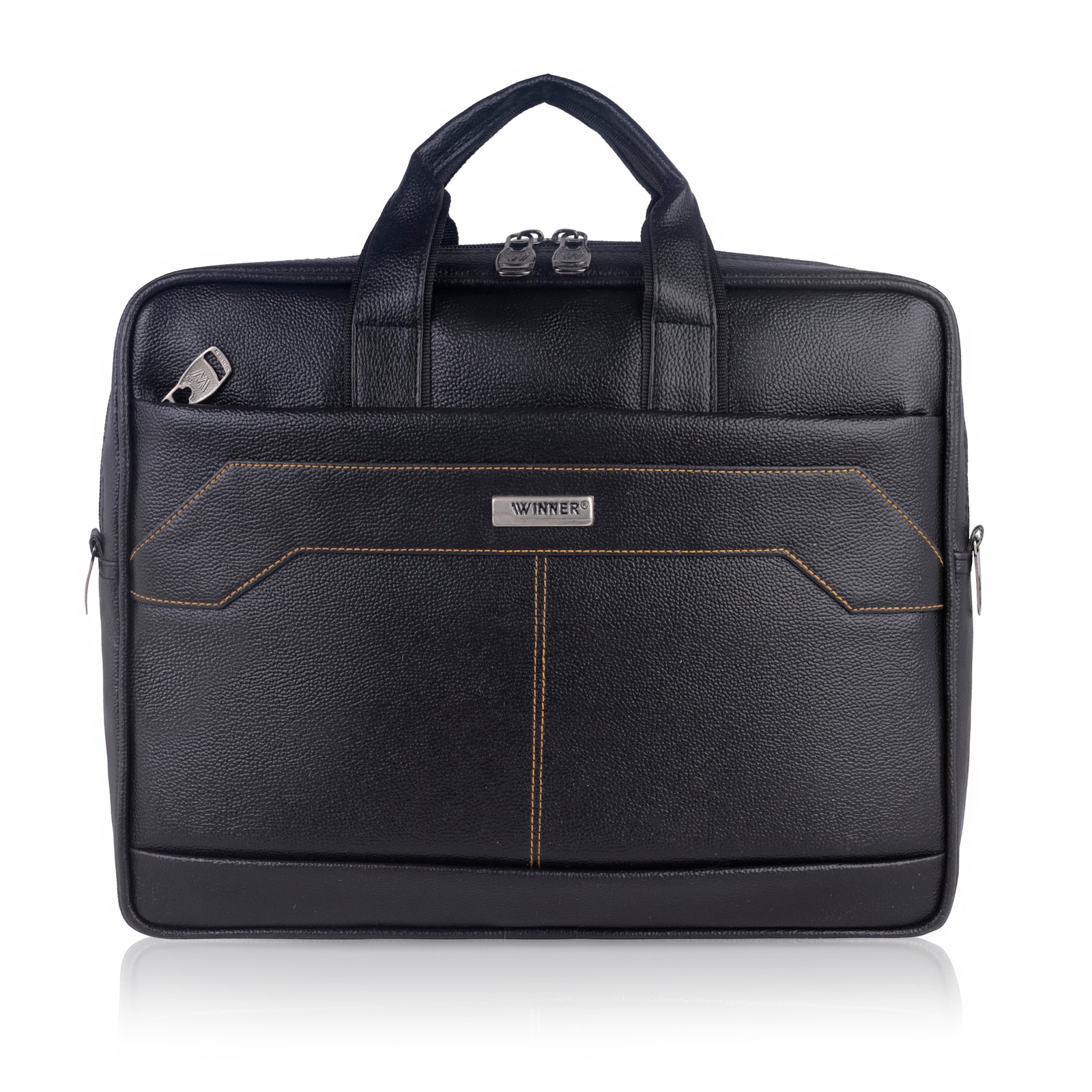 Stay organized and professional with the Winner Office File Bag. Designed for working professionals and business travelers, this sleek black bag is crafted from durable Foam-leather-textured material with contrast stitching for a premium look. It features spacious compartments to hold files, documents, laptop, and accessories, while dual carry handles and a detachable shoulder strap offer flexible carrying options.