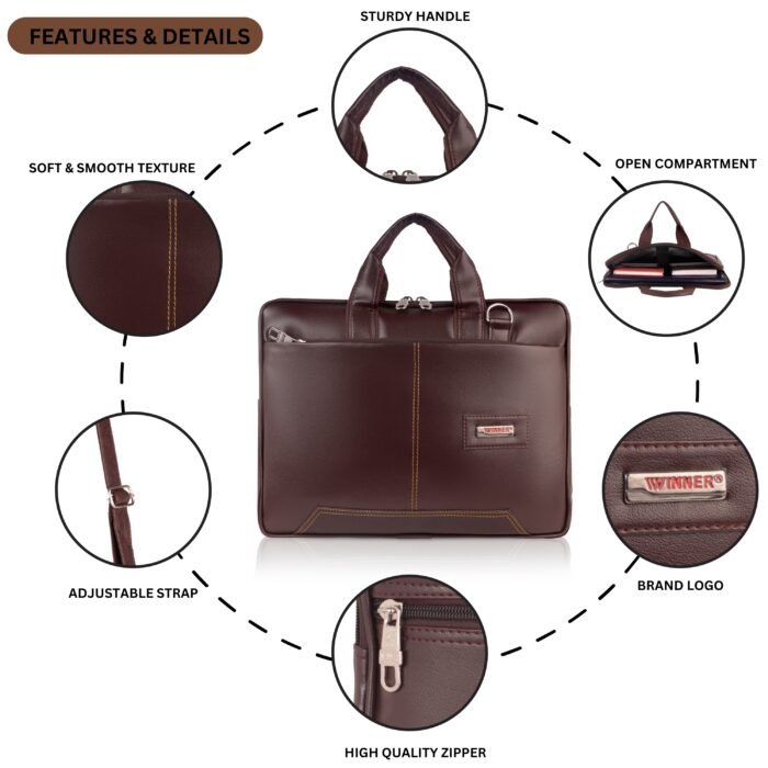 Stay organized and professional with the Winner Office File Bag. Designed for working professionals and business travelers, this sleek black bag is crafted from durable Foam-leather-textured material with contrast stitching for a premium look. It features spacious compartments to hold files, documents, laptop, and accessories, while dual carry handles and a detachable shoulder strap offer flexible carrying options.