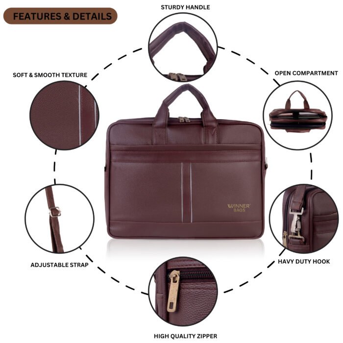 Stay organized and professional with the Winner Office File Bag. Designed for working professionals and business travelers, this sleek black bag is crafted from durable Foam-leather-textured material with contrast stitching for a premium look. It features spacious compartments to hold files, documents, laptop, and accessories, while dual carry handles and a detachable shoulder strap offer flexible carrying options.