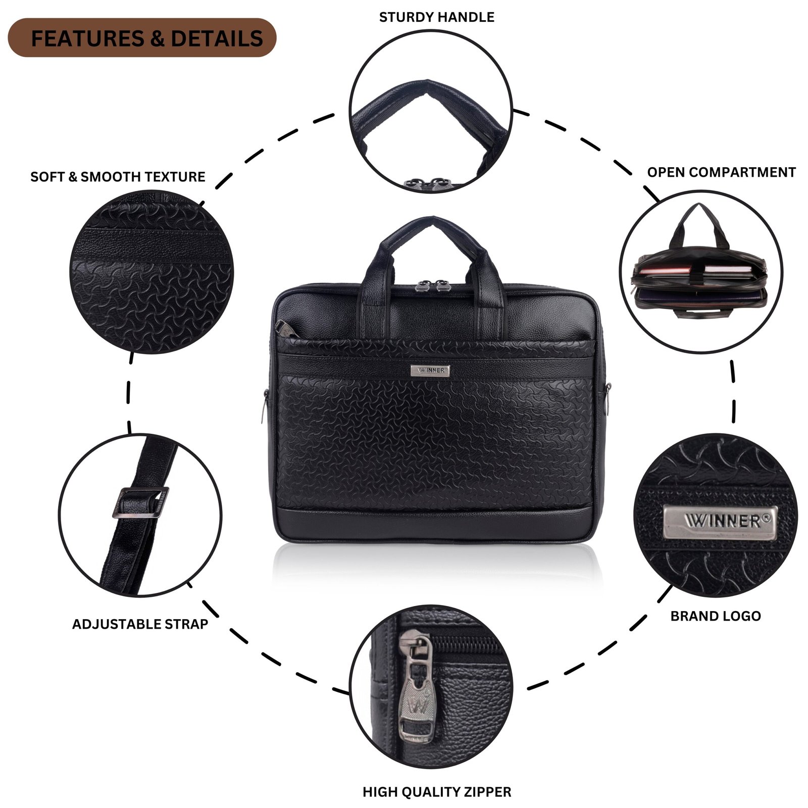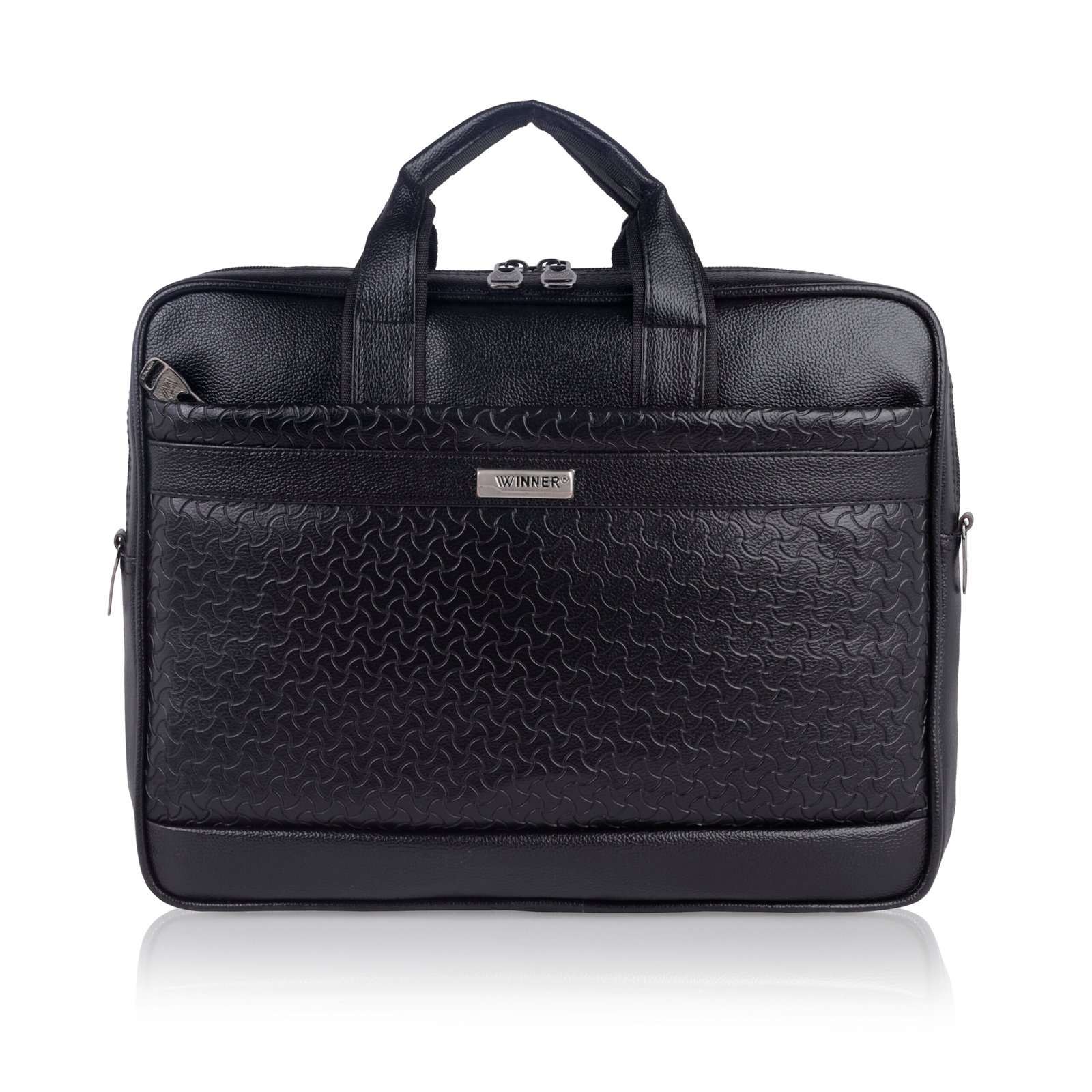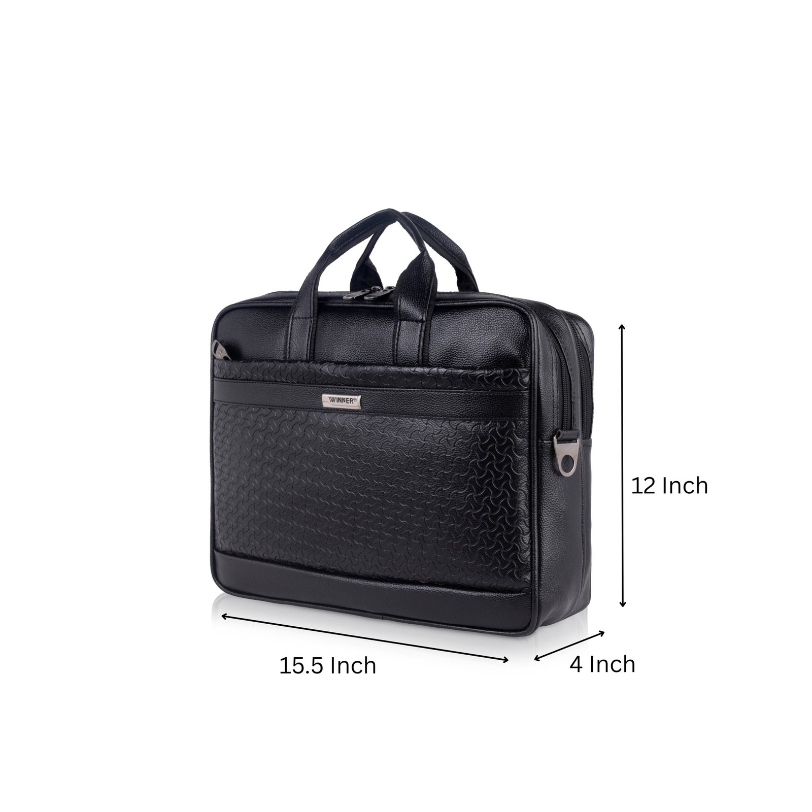 Stay organized and professional with the Winner Office File Bag. Designed for working professionals and business travelers, this sleek black bag is crafted from durable Foam-leather-textured material with contrast stitching for a premium look. It features spacious compartments to hold files, documents, laptop, and accessories, while dual carry handles and a detachable shoulder strap offer flexible carrying options.
