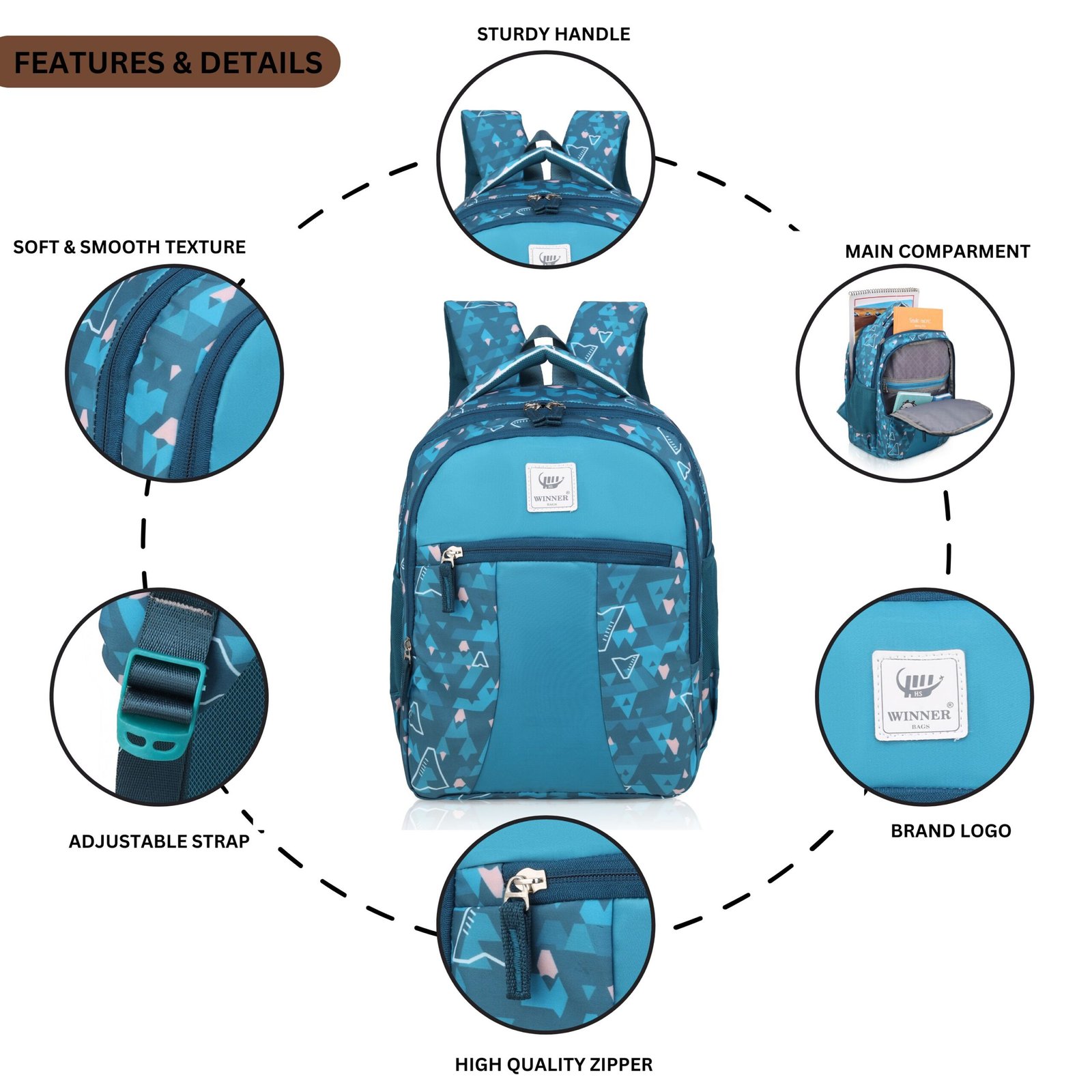 Winner Blossom Lavender School/College Backpack – Floral Print with 3 Compartments