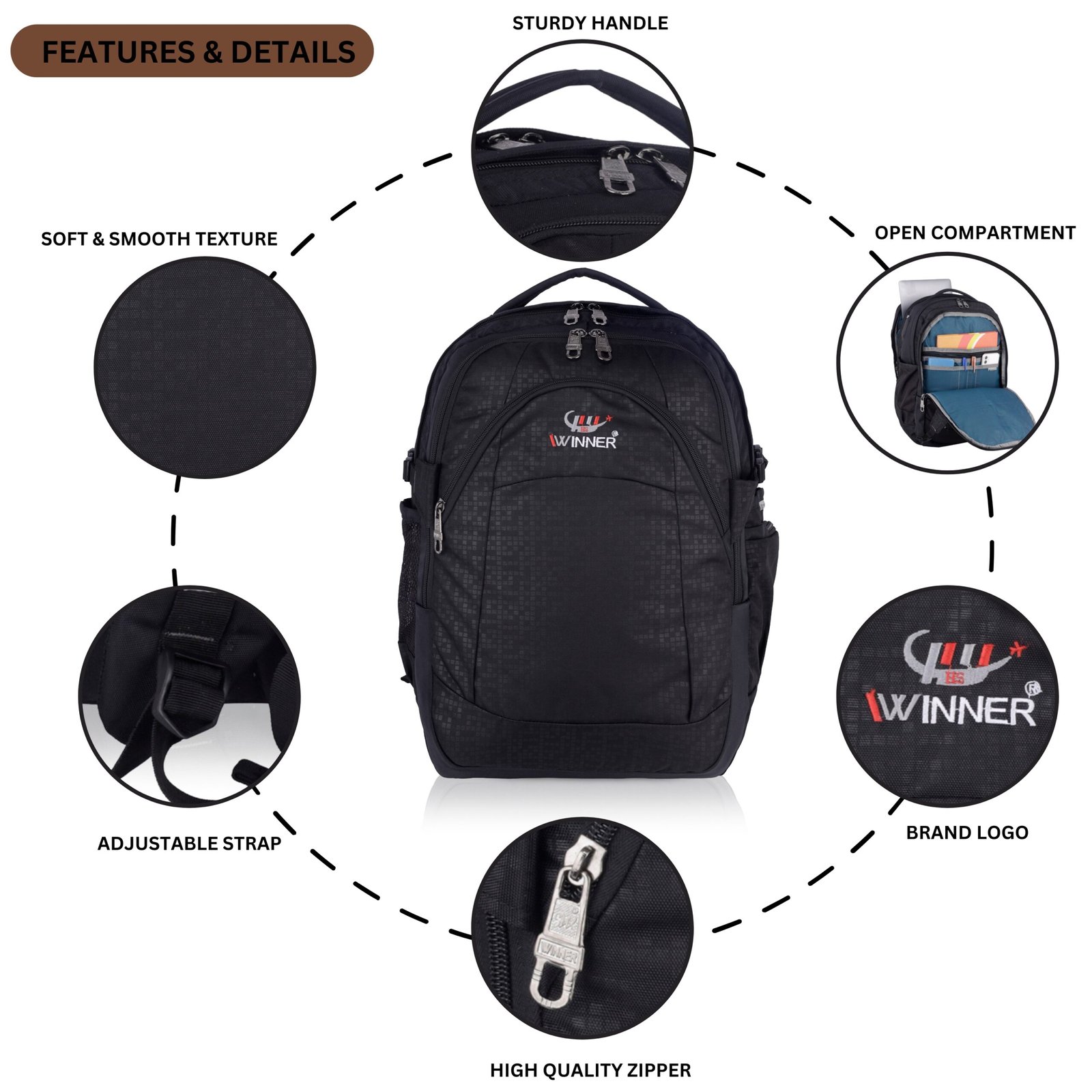 The Winner TechPro Laptop Backpack is designed for professionals, students, and frequent travelers who need organized storage and rugged performance. With multiple zip compartments, dedicated laptop padding, and reinforced stitching, it offers secure space for your tech and essentials. The breathable back padding and adjustable shoulder straps make it perfect for all-day wear.